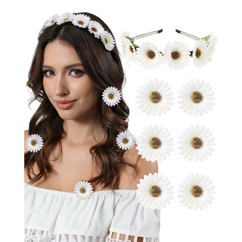 Ufgin Women's Sunflower Headband Set - Hair Clips, Wreath, Hippie Accessories & Hair Accessories for Girls (White)