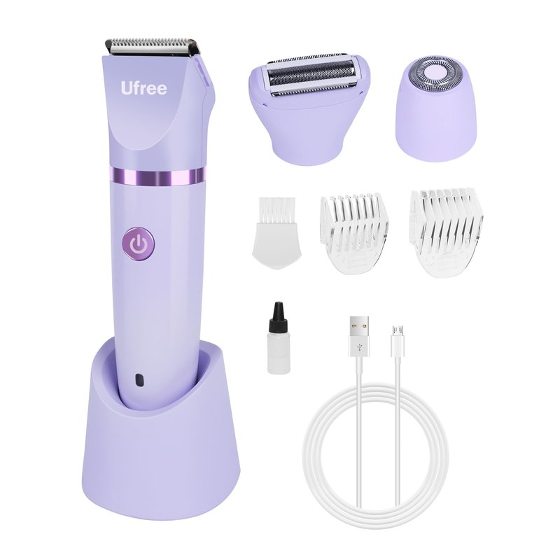 Ufree Bikini Trimmer for Women, Electric Razor for Pubic Legs Body Hair Rechargeable Removal with Snap-in Ceramic Blades, Face Razors for Women, IPX7 Waterproof, Purple, Gifts for Women