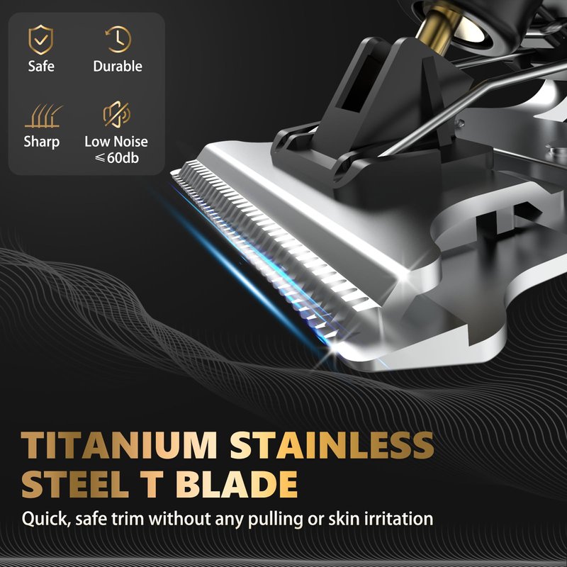 - 【Ultimate Zero Gapped&Close Shave】Experience a professional electric razor shave with our titanium t-blade, made with sharp and skin-friendly R-shaped obtuse edges which can trim hair, beard, face, mustache, sideburns and body hair without hair pulling or skin irritation. Fast and smooth cutting gives you an incredible fade and crispy line up. Perfect for both home use and barber supplies.