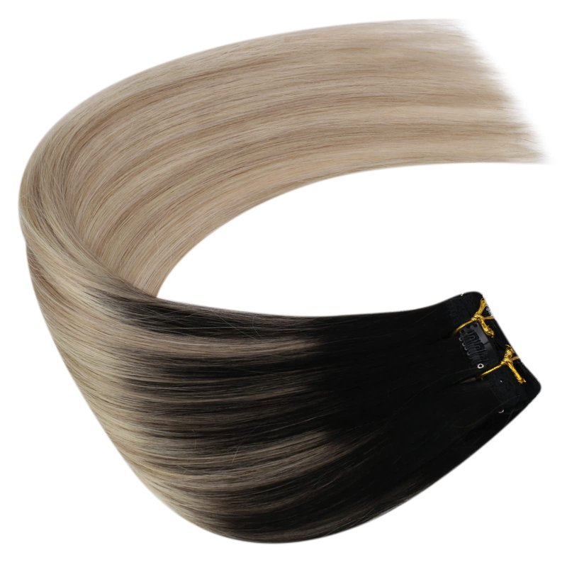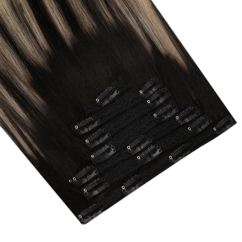 Ugeat Clip in Human Hair Extensions Black Ombre to Blonde Hair Extensions Clip in Real Human Hair Balayage Clip Hair Extensions Double Weft 20 Inch 120 Grams #1B/18/60