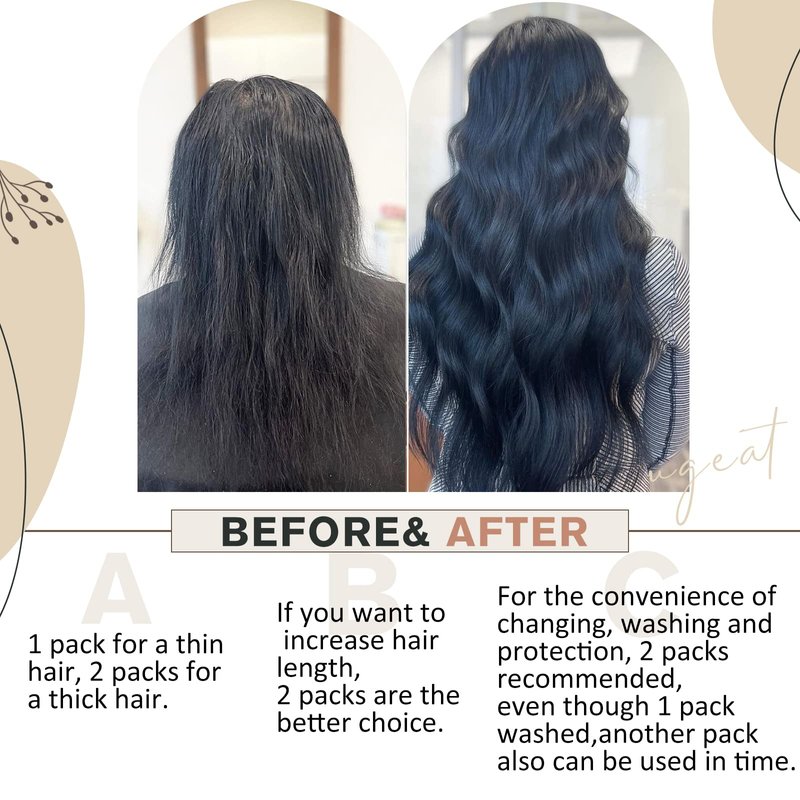 - [ Stainless steel metal clips with unique U-shaped design ] The U-shape metal clips reduce tear, ensuring a comfortable and long-lasting wear experience. For added volume, 1 sets are recommended, while 2 sets achieve a full head. Whether you desire length or thickness, we've got you covered.