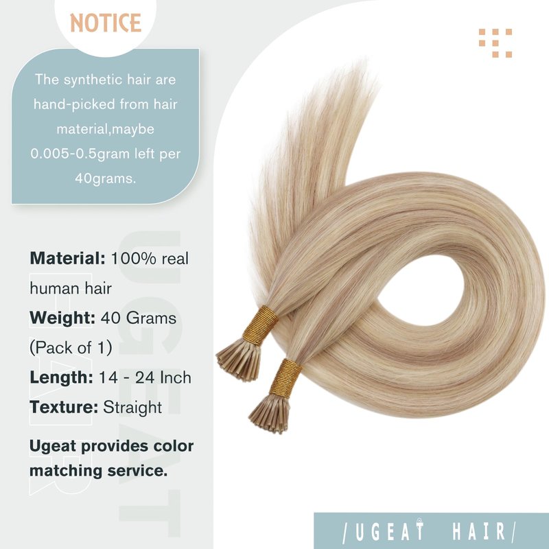 Ugeat I Tip Hair Extensions Human Hair Ash Blonde Itip Hair Extensions Short Hair Remy Human Hair Extensions I Tip 14 Inch 50s 40g