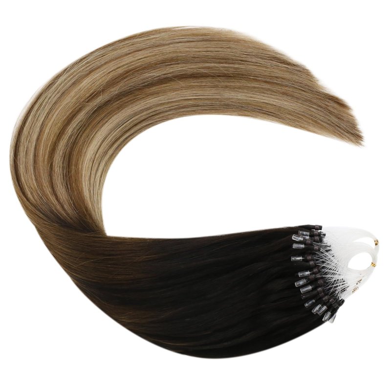 Ugeat Micro Link Hair Extensions Human Hair Ombre Darkest Brown to Medium Brown Mix Ash Blonde Micro Ring Hair Extensions For Short Hair Micro Extensions Human Hair 14 Inch 50s