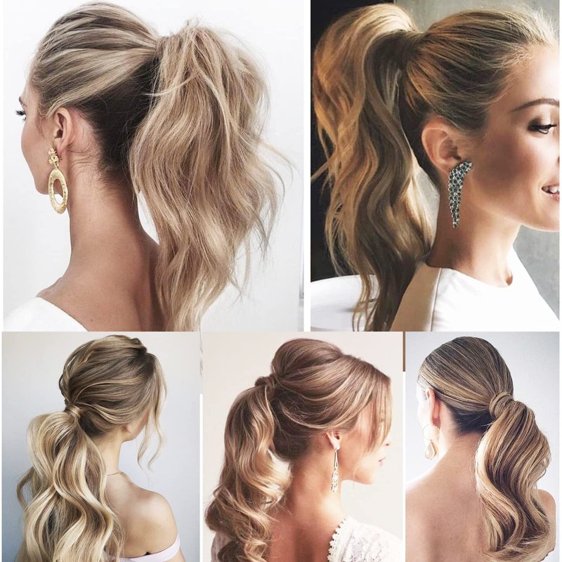- ❤ Ponytail Extension Quality: real human hair Highlight Ash Blonde Mixed Bleach Blonde ponytail, very soft and natural, reusable, washable, can be restyle, straight ponytail hair, weight:60g