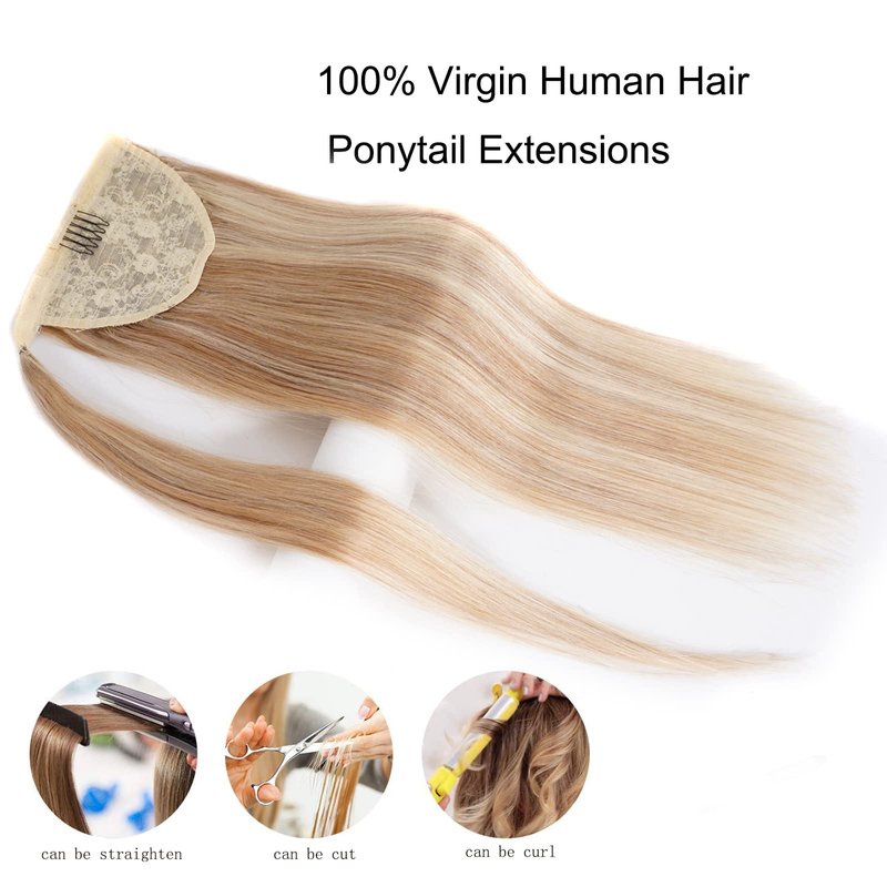 - ❤ Ponytail Extension Quality: real human hair Highlight Ash Blonde Mixed Bleach Blonde ponytail, very soft and natural, reusable, washable, can be restyle, straight ponytail hair, weight:80g.