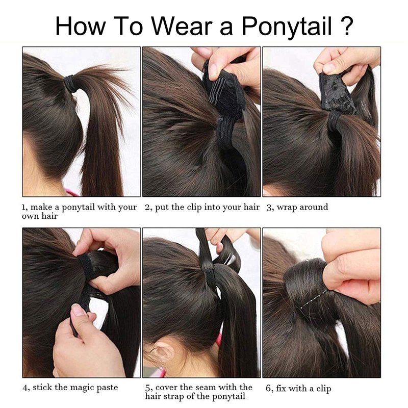 - ❤ Ponytail Extension Features: This magic paste ponytail extension is easy to wear, and the magic paste can hold the ponytail well, you could change your hair styles easily. 3.5x5.5 inch hairnet, 1 clip on the hairnet, just few seconds and you will get a long thick ponytail like magic.