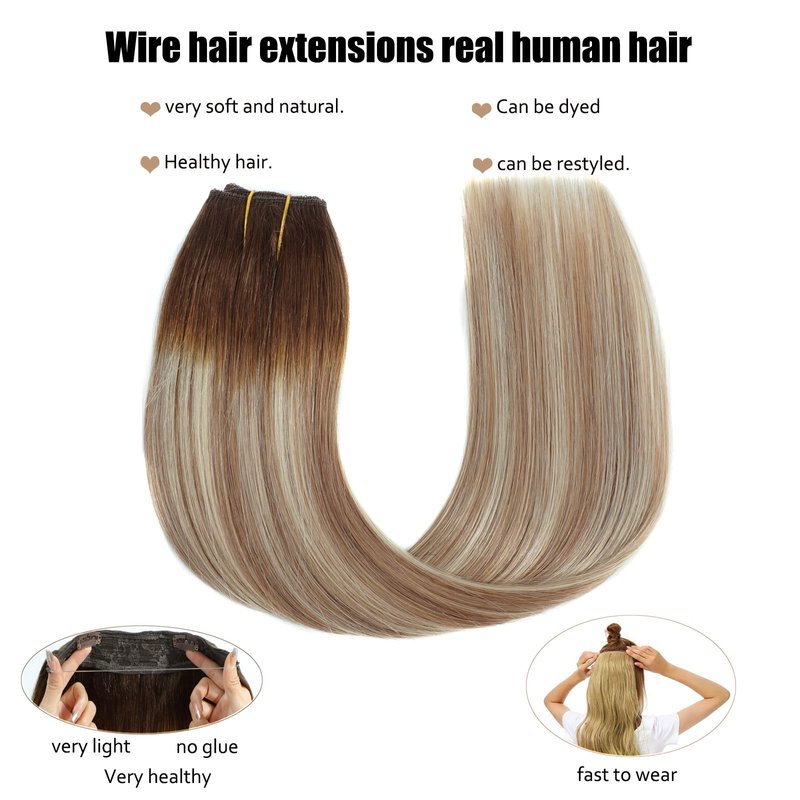- ❤Wire Hair Extensions Quality:100% real human hair can be dyed and styled.Double Fixed with Fish Line and Clips,very Stable.
