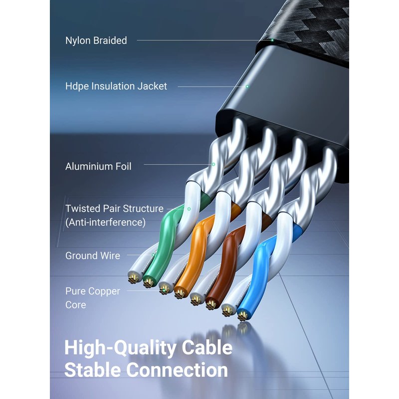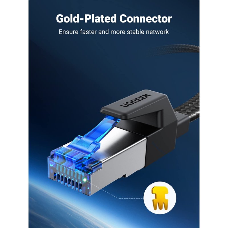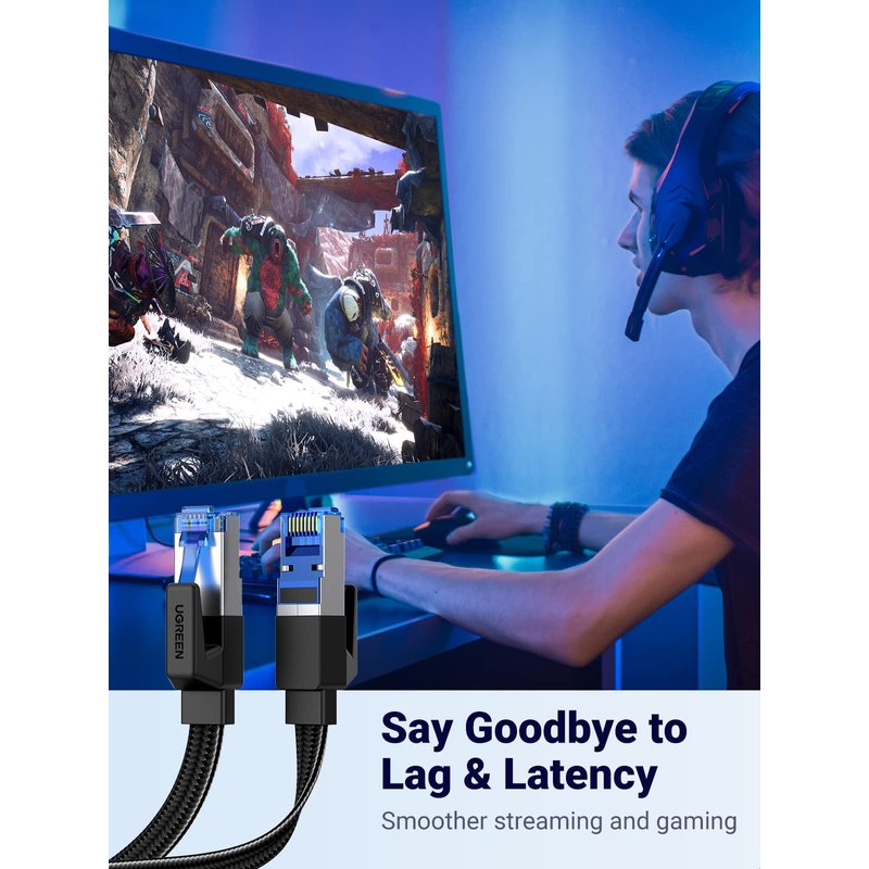 UGREEN Cat 8 gigabit network cable supports up to 40Gbps 2000Mhz high speed, 4x compared to Cat 7. No matter when you are online gaming, streaming videos, surfing the Internet, listening to music, download, or upload, there is no hassle of slow network.