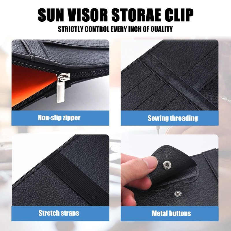 - Durable Material: The sun visor organizer made of premium PU leather material and stainless zipper with 1 zipped big compartment, 1 mesh pocket, 5 card holder pockets, 1 pen slot and hidden pocket. No irritating smells, upgraded material, sturdy and durable, not disturbing the view while driving, ensures safety.