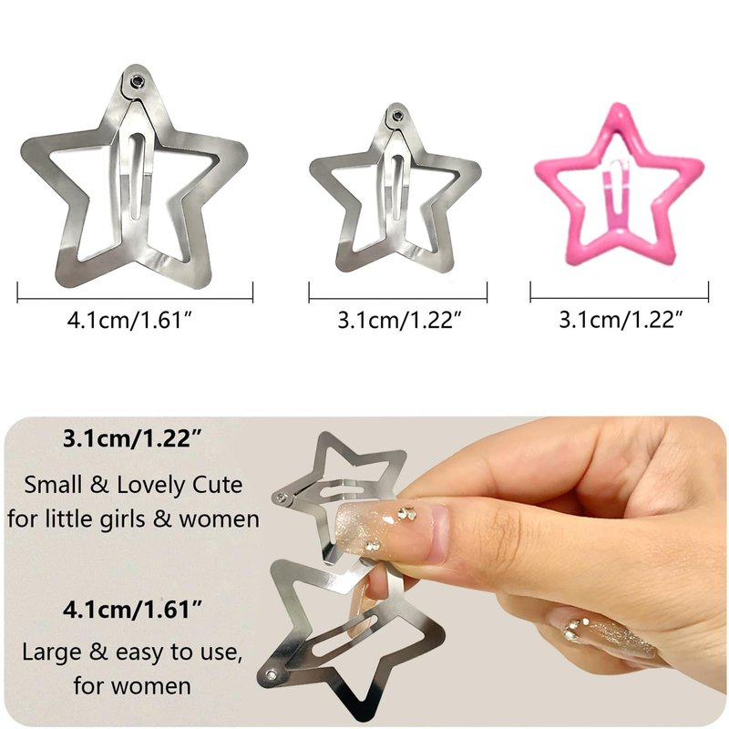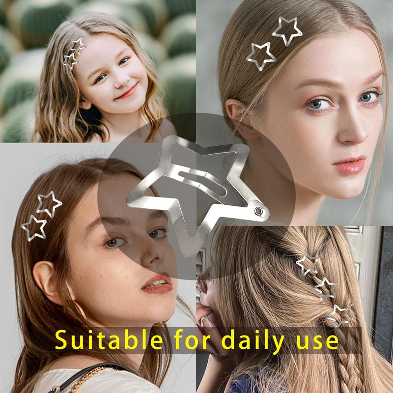 - 【Suitable for All Kinds of Hairstyles】Star hair clips measure approximately 1.22 inches, suitable for both adults and little girls.snap hair clips are suitable for all kinds of hairstyles, whether thick or thin hair, long or short hair, straight or curly hair.