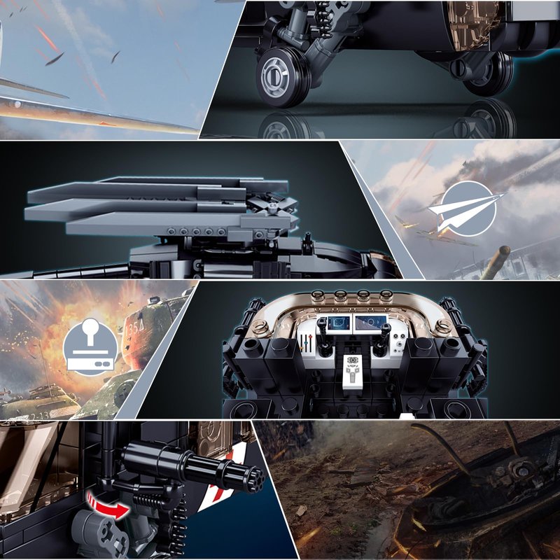 - Helicopter Set Details: The cockpit boasts decal stickers for a comprehensive instrument panel & control sticks. Center console gauges add authenticity. Left fuselage features a manual winch for added play value. Cabin doors detach & attach to sides for easy opening, accommodating minifigures & unique display. Plus, foldable rotors & rotatable tail section enhance realism, while detailed weaponry settings bring battle scenarios to life.