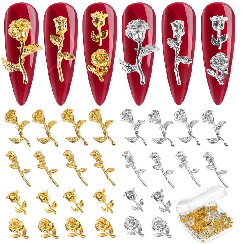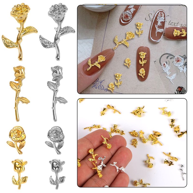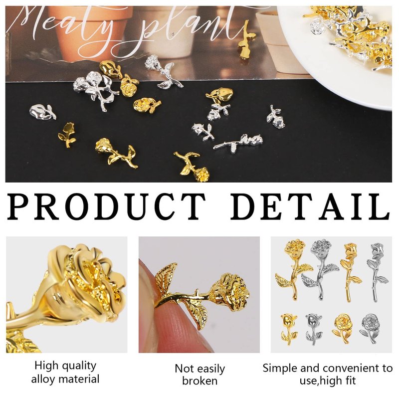 - 【High Quality】 These golden and silver rose nail DIY decoration charms are made of high quality alloy material, the surface is smooth, light, not easy to break or deform, won't hurt your nails, can be used for a long time