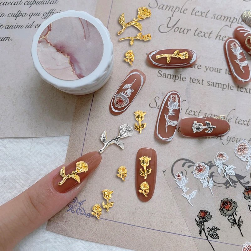 - 【DIY Your Own Ideas】 Rose Design Nail Art Decoration is easy to use and reusable, you can not only stick the Rose Alloy Nail Charm on your charming nails to create your own style nail art, but also use the DIY Rose Alloy Charm for Make art jewelry handmade crafts to add sparkle to your crafts