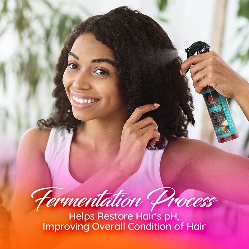 - Nourishing Rinse: The slightly acidic pH combined with the added nutrients from the fermentation process help restore the hair’s pH balance, nourishing hair follicles to promote healthy hair growth and improve the overall condition of hair.