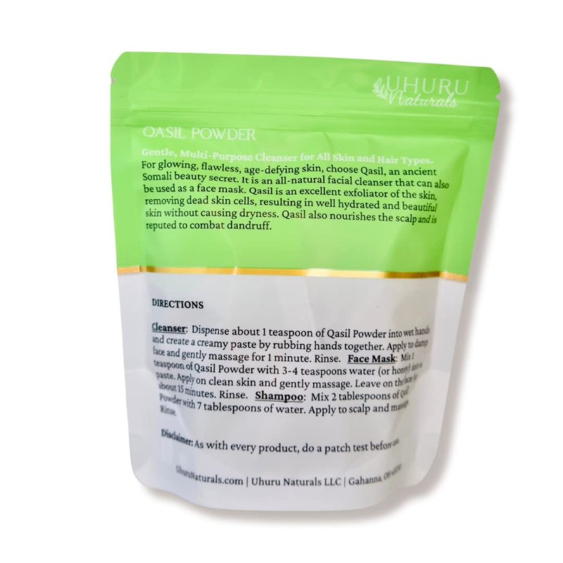 - BENEFITS: Cleansing, Brightening, Detox Get instant glowy skin with Qasil powder! Qasil Powder is a multipurpose beauty product from East Africa and can be used as a cleanser, a face mask, an exfoliant, a shampoo, and more!