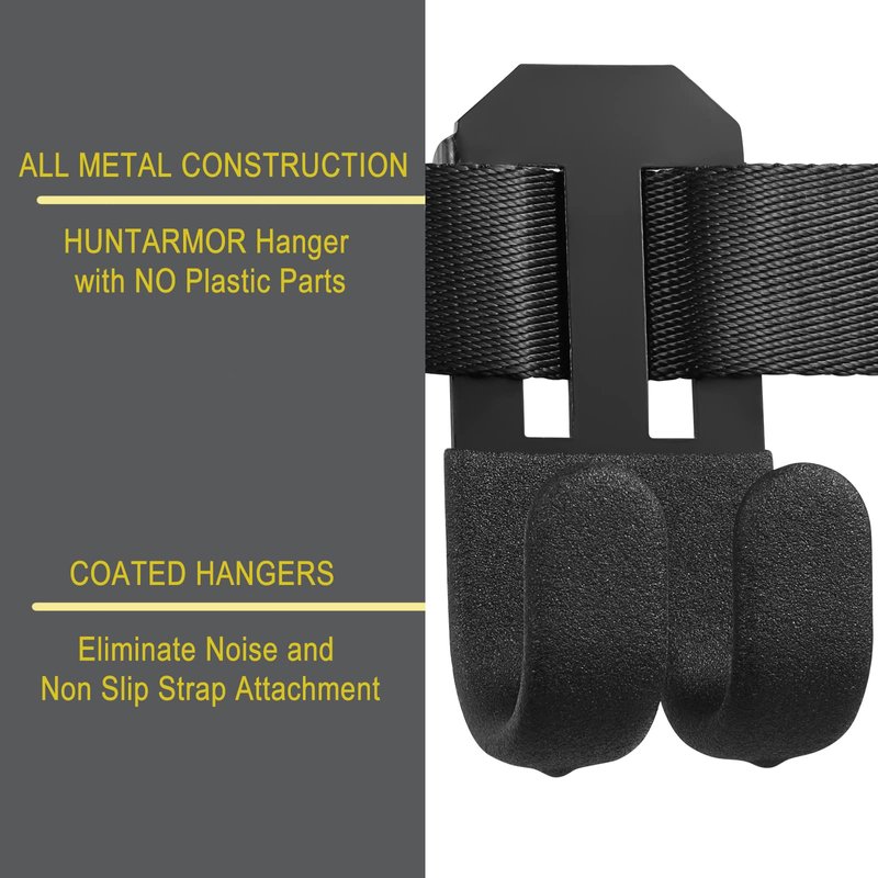 - NO DAMAGE TO TREES: Our treestand strap hangers are designed to avoid tree damage, with no screws required. They're perfect for holding bow hunting accessories and other hunting items while in a climbing stand, and can even support the full weight, allowing for hands-free and comfortable hunting for hours.