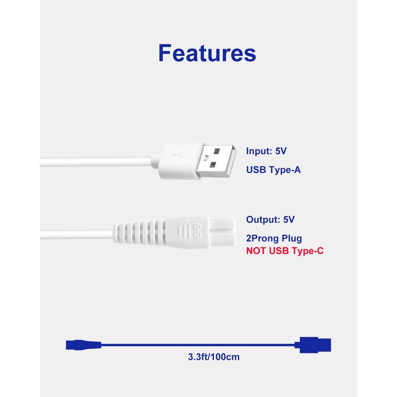 - 【Features】 Input: AC 5V USB Type-A; Output: DC 5V 1A 5W(max) 2 Prong Plug(NOT USB Type-C); Power cord length: 3.3ft/1m. Bend lifespan of more than 6000 times. with 2 Cleaning Brushes.