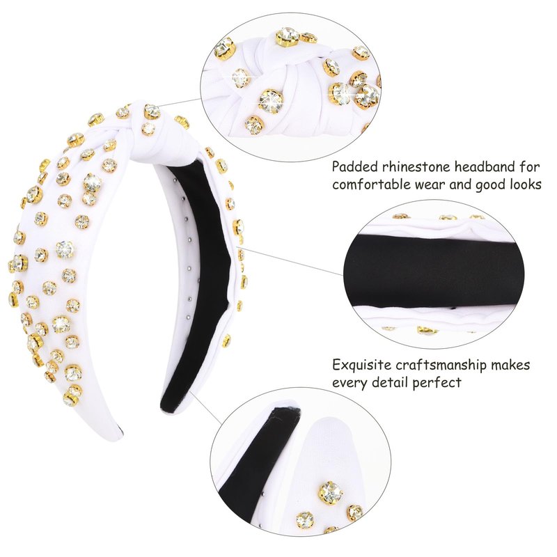 Uintoon White Knotted Headbands for Women Sparkly Crystal Rhinestone Headband Fashion Headbands Hair Accessories for Women Girls Non Slip Wide Top Knot Headbands for Women