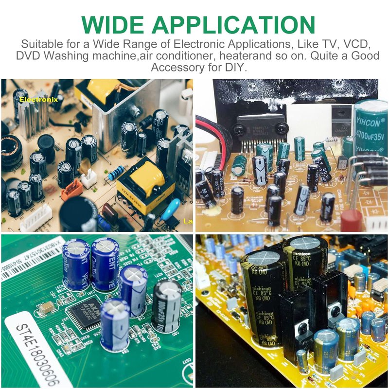 - Aluminum electrolytic capacitors, suitable for repairing and modifying TVs, LCD monitors, radios, stereos, game consoles, microwave ovens, prototyping, etc. Good for repairs and small projects.