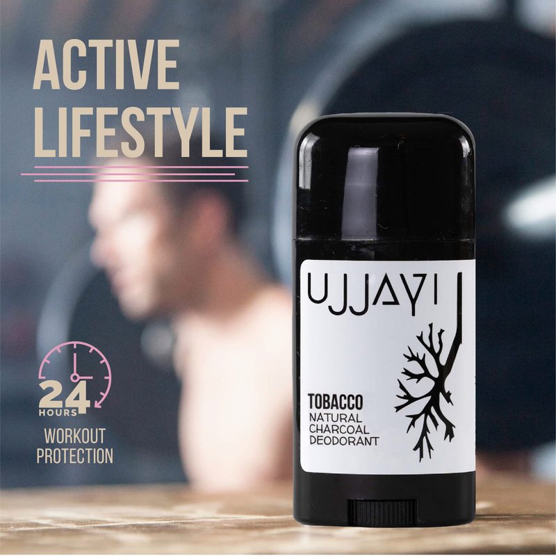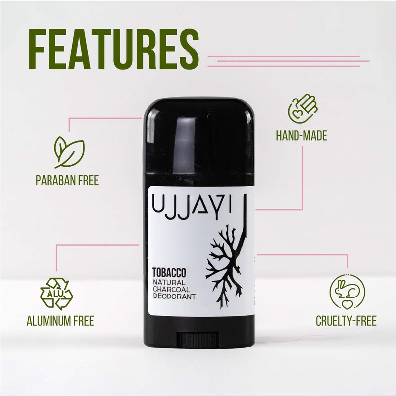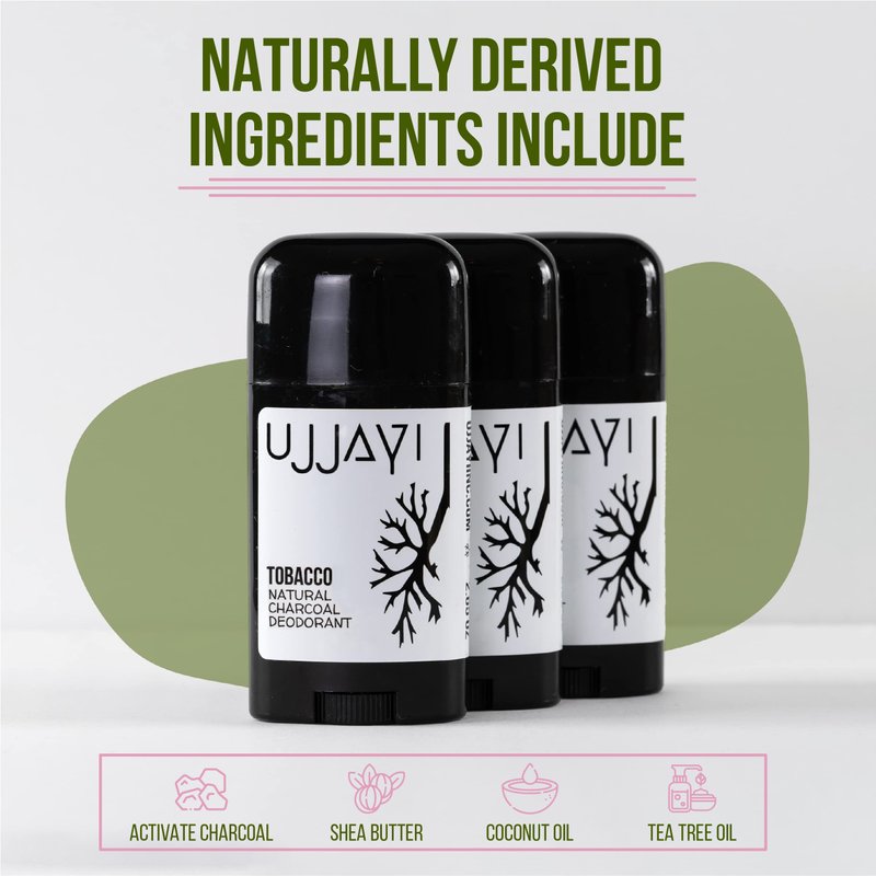Ujjayi Natural Deodorant with Activated Charcoal | Tobacco | Deodorant for Men and Women | Aluminum-Free, Paraben-Free, Sulfate-Free, Vegan, Gluten-Free, Cruelty-Free, Handmade