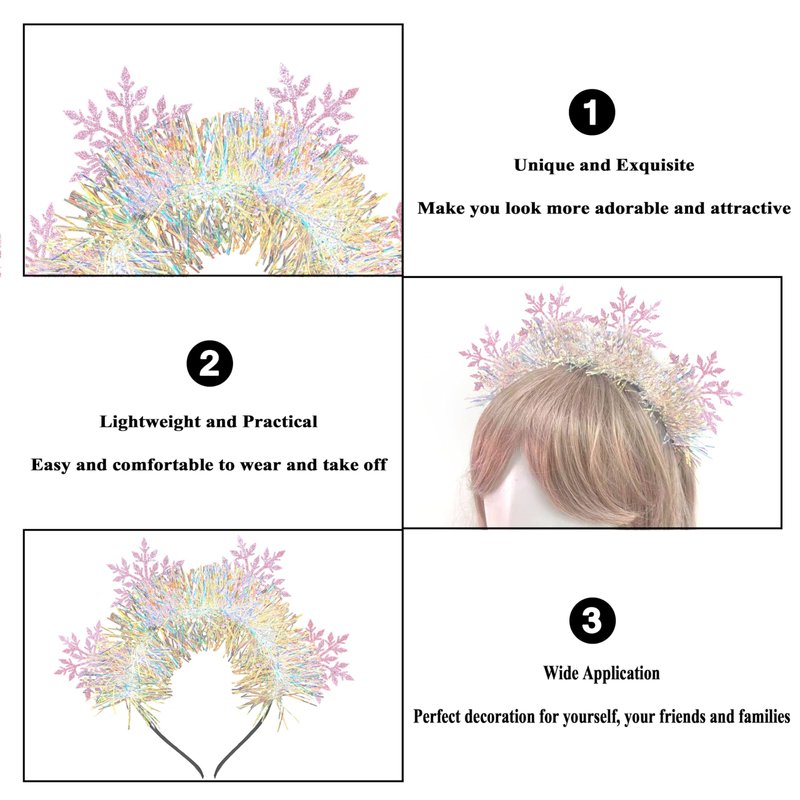 - ❄【Adorable Christmas Outfit】This Christmas snowflake headband is unique and exquisite. Four shiny pink snowflake patterns are attached to the headband with glitter ribbon, and its sparkle can be seen from different angles, vivid and interesting, which will make you look more adorable and attractive, bringing a joyful Christmas atmosphere.