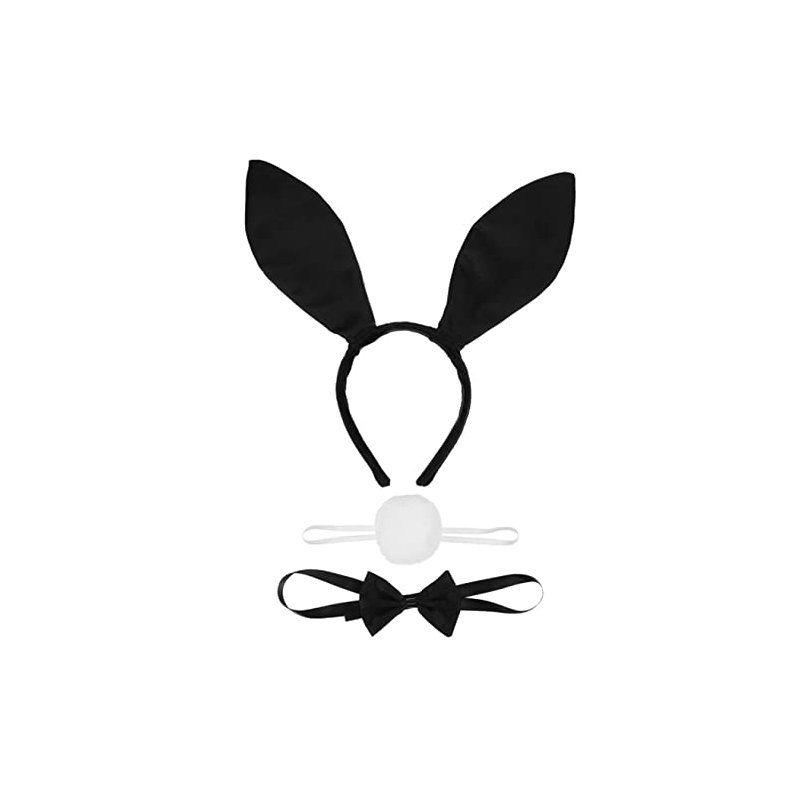 UJLN Women's Bunny Accessory Set Rabbit Ear Headband Collar Bow Tie Rabbit Tail for Easter Costume Cosplay Accessories for Adult Children-3Pack
