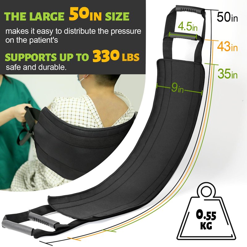 - 💚 UP TO 330 POUNDS WEIGHT CAPACITY - transfer belt for elderly and disabled larger patients can sometimes be tricky. Our transfer sling can be useful to solve this problem: it is strong enough to lift patients whose weight areapproximately up to 330 pounds, and carry heavy workloads.The large size gait belt is only 0.37 pounds, so it is easy to fold and store.