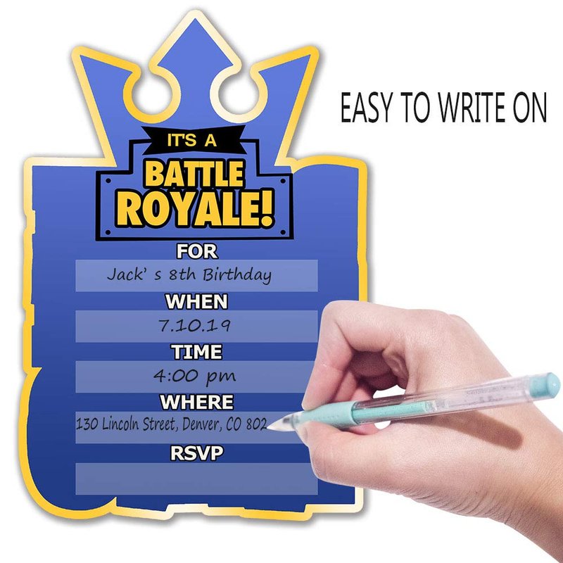 - Double Sided Design: The backside of the invitation has a different game theme.