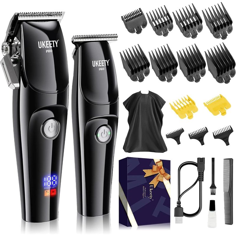 Ukeety Hair Clippers for Men,Professional Hair Cutting Kit Cordless Close Trimmer with LED Display Beard Trimmer Barbers Men Women Kids Clipper Set Full Metal Rechargeable Grooming Kit