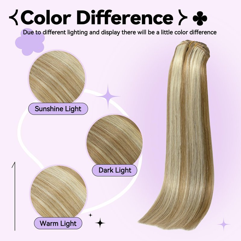 - 【Clip in Hair Extensions Real Human Hair Color Match】-- Our clip in human hair extensions include a variety of solid colors, highlight, ombre, and balayage effects. Provide you with multiple choices to create different hairstyles. ❤️Due to different shooting lighting and display equipment, there may be slight color differences between the product pictures and the actual hair. We can provide you with color matching services before placing your order.