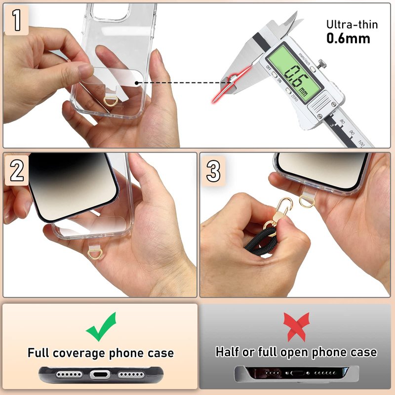 - Easy to Install and Not Affect Charging: Put the transparent phone patch through the charging hole of the phone case, then install the phone case, buckle the metal buckle with lanyard, easy to install. Phone patch is very thin, will not affect the charging port and wireless charging, phone patch without glue, after removal will not leave residue on the phone case, more convenient.