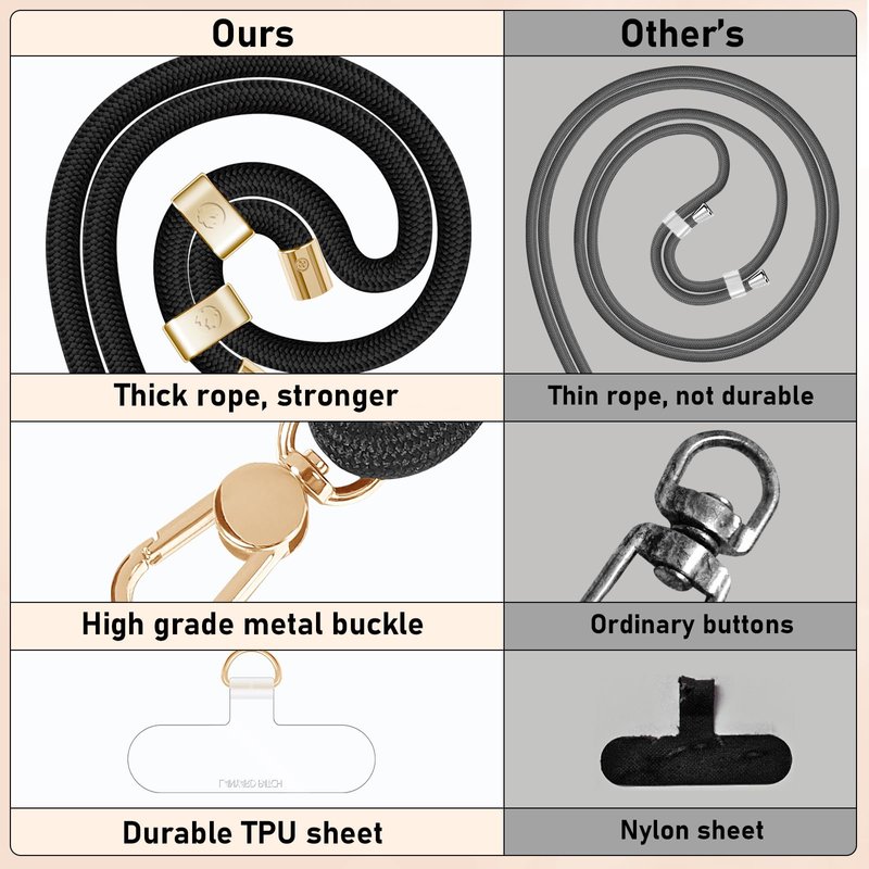 - High-grade Metal Buckle: All the metal buckles of this phone lanyard are our custom-made, made of Alloy material which is high-grade, more durable and will not fade easily. Two adjustable metal buckles can be adjusted on both sides to increase the force area so could reduce the pressure of the shoulder.The ending metal buckle at the end of the lanyard makes the lanyard look more superb.