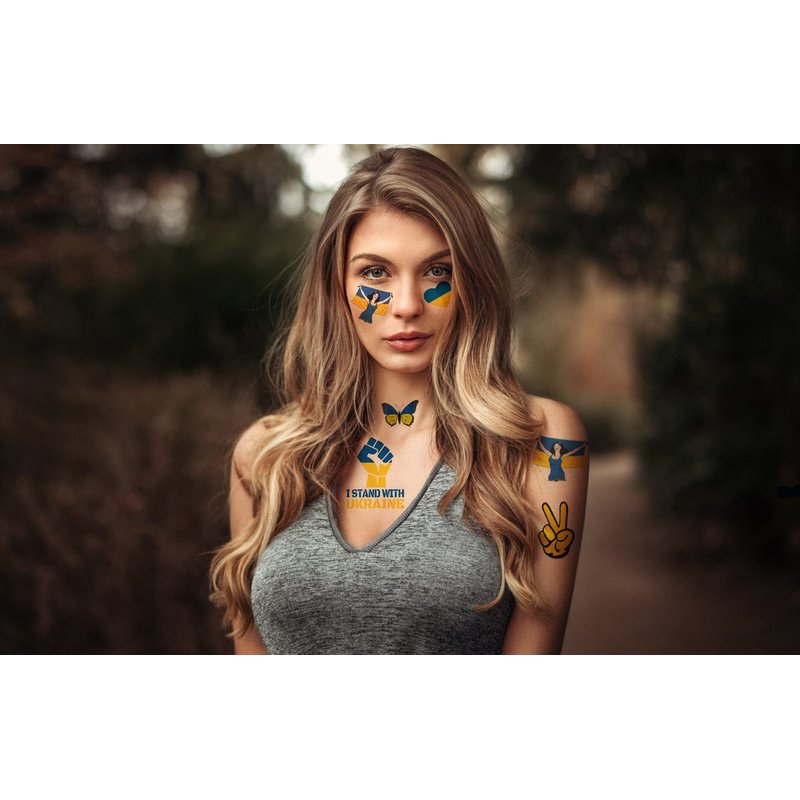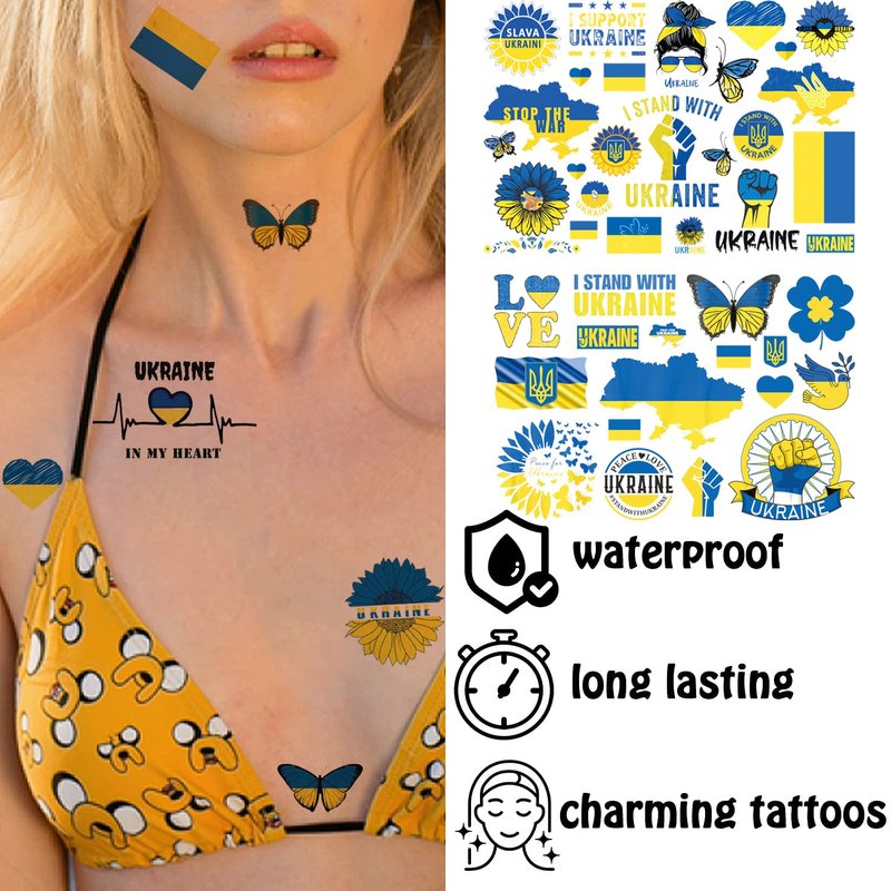 Our Ukraine temporary tattoos usually last up to 2 to 5 days depending on the applicable area(1-2 days on fingers; 2-3 days on the back of hands and wrists; 2-4 days on neck, chest, shoulders, and arms; 3-4 days on waist; 3-4 days on legs; 5-6 days on ankles).