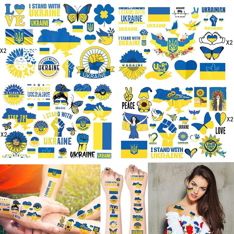 - 【Multiple Interesting Combinations】You will receive 8 sheets of Ukraine theme temporary tattoo stickers. Unique Patriotic Theme tattoos are so cute and perfect. It has many options of different designs to match your friend's/family's Independence Day decorations. Different sizes of pattern size designs can also be used for the face, hand, and body.