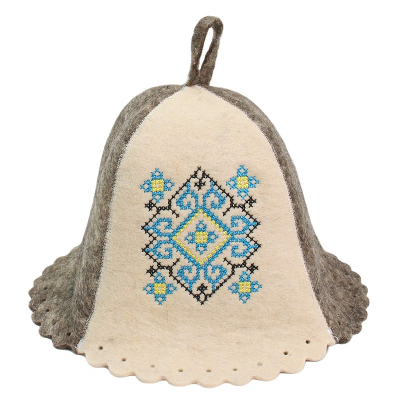 Ukrainian Wool Sauna Hat for Men and Women Ornament Blue Protect Hair - Sauna Cap for Men - Banya Hat for Men - Felt Sauna Hat Wool - Sauna Hair Protector