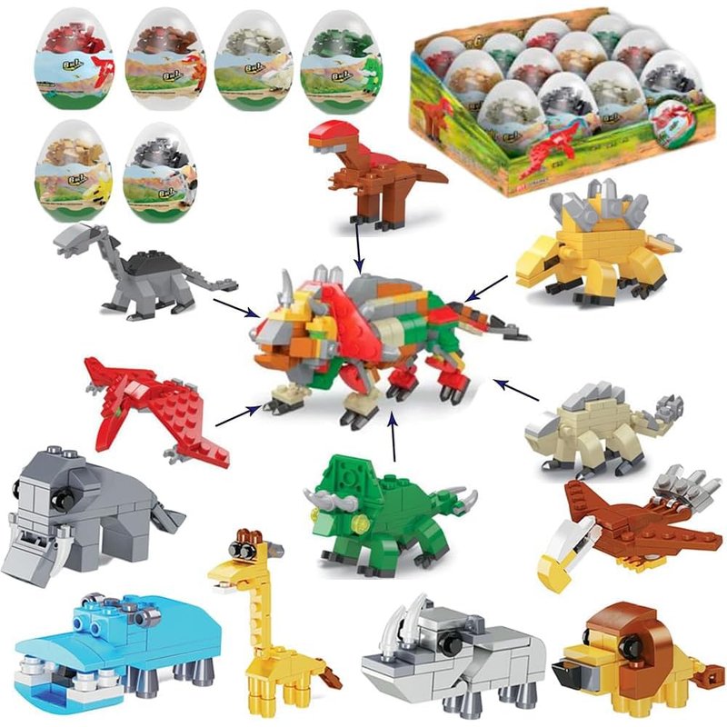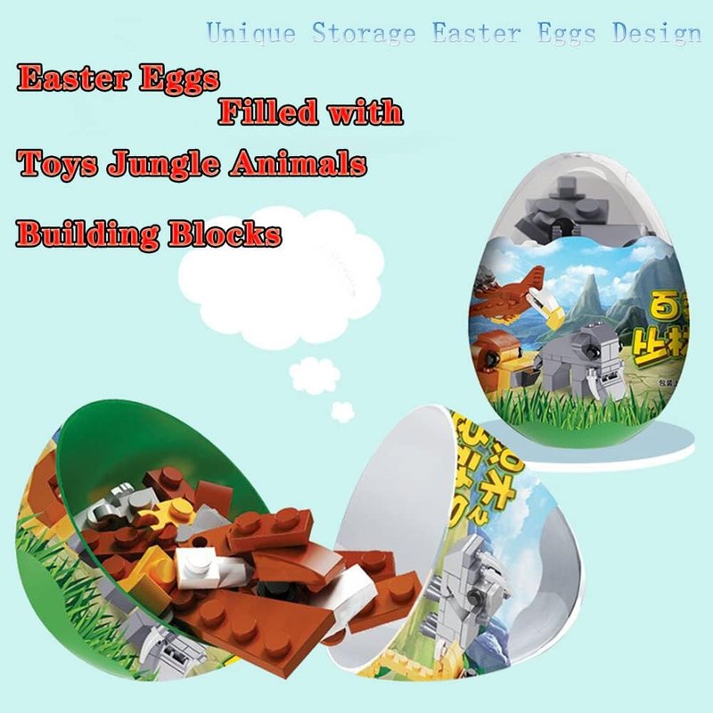 - DINOSAUR & JUNGLE ANIMALS BUILDING BLOCKS: 6 pcs dinosaur building blocks and 6 pcs jungle animals filled Easter eggs. 12 different models that enable children to learn different types of dinosaurs and animals.