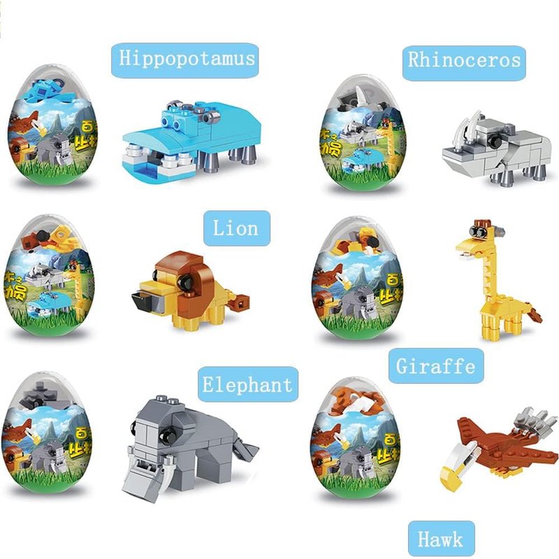 6 x Easter Eggs with Jungle Animals Building Blocks
