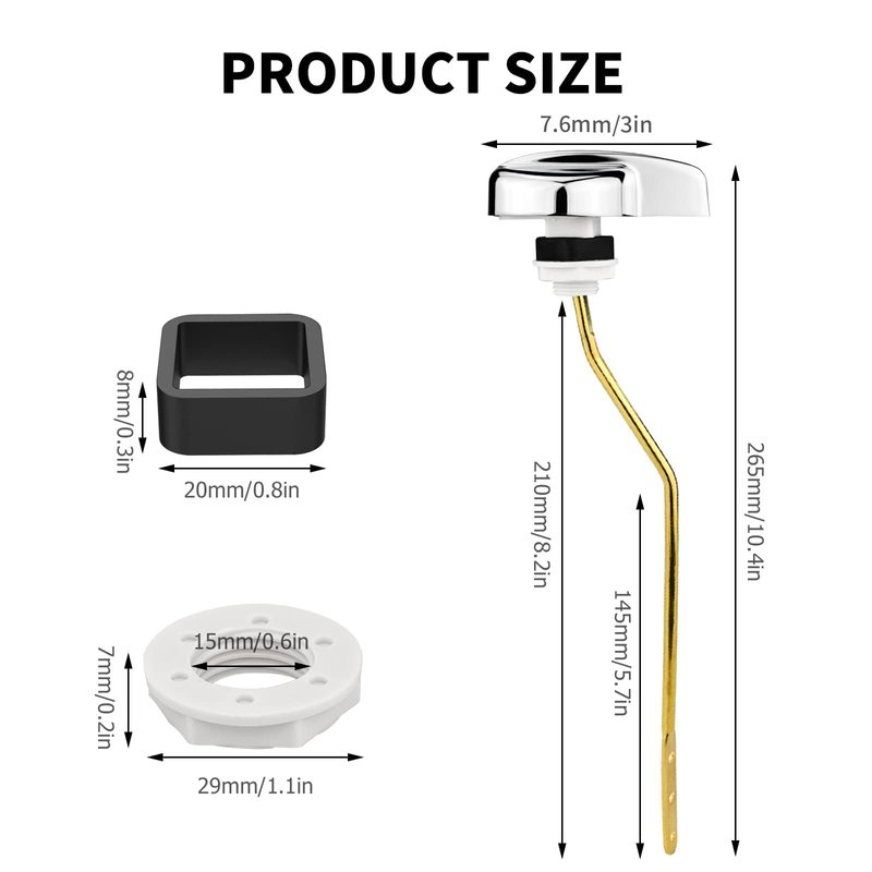 - Easy to Install: Just remove the old parts and align the new replacement parts to properly install them. You can easily install them without maintenance personnel. The locknut helps prevent loosening over time. There are three holes at the end of the lever, and the length can be flexibly adjusted according to your toilet water tank.
