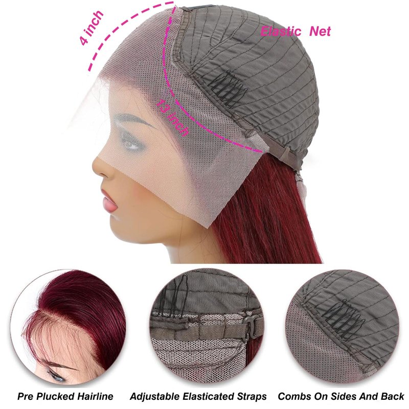 Burgundy Lace Front Wigs Human Hair Wigs for Black Women 13x4 HD Lace Front Wigs Human Hair Pre Plucked Red Lace Front Wigs Human Hair Straight Lace Front Wigs Human Hair Burgundy Wig 20 Inch burgundy lace front wigs human hair, red lace front wigs human hair, burgundy wig, 99j burgundy lace front wigs human hair, red wig human hair, red human hair lace front wigs, red human hair wig, burgundy wig human hair wig straight lace front wigs human hair wigs for black women HD pre plucked 20inch Burgundy Lace Front Wigs Human Hair Color: burgundy is an elegant color, deep wine red with a little purple, more gorgeous. Burgundy has the warmth of red, but is more subdued and elegant than red. Pure burgundy color with natural shinny, understated but powerful. Material of Red Lace Front Wigs Human Hair: unprocessed Brazilian virgin remy pure burgundy wig, smooth hair silk straight texture, cut from young girls, none synthetic or animal hair mixed. Burgundy wig human hair is clean, healthy, bouncy, soft, no smell, no shedding, no tangle, long-term use with normal care. 13x4 Lace Front Wigs Human Hair Red Wig Human Hair: 13x4 Swiss transparent hd lace front wigs human hair, lace material make it more comfortable and breathable. Breathable mesh hair hat with hd invisible small knots, suitable for all skin colors, protective and match your skin naturally. 13x4 lace area, supports middle part, side part or braid the 13x4 topper lace part, half up half down. Pre plucked baby hair with natural hairline. Natural color, can be dyed, straightened, curled, bleached knots, restyled as you like. 99j Burgundy Lace Front Wigs Human Hair Details: 180% density red human hair lace front wigs with full and healthy hair ends, looks thicker. Medium size wig cap, about 22.5 inch, with 4 combs and adjustable strap, easy install, fixed on head well. 22-30inch, true to length. Easy Maintenance Red Human Hair Wig: can be cared for by washing it with a high-quality shampoo and combing it with a wide-tooth comb daily. Burgundy wig human hair can be conditioned every couple of weeks to keep it soft and shiny. Suit for all ages people, make you feel more attractive and confident on variety of occasions like weddings, appointments, birthday, vacation, celebration, graduation, themed parties, back to school, daily life, dating, cosplay. Show your beauty!