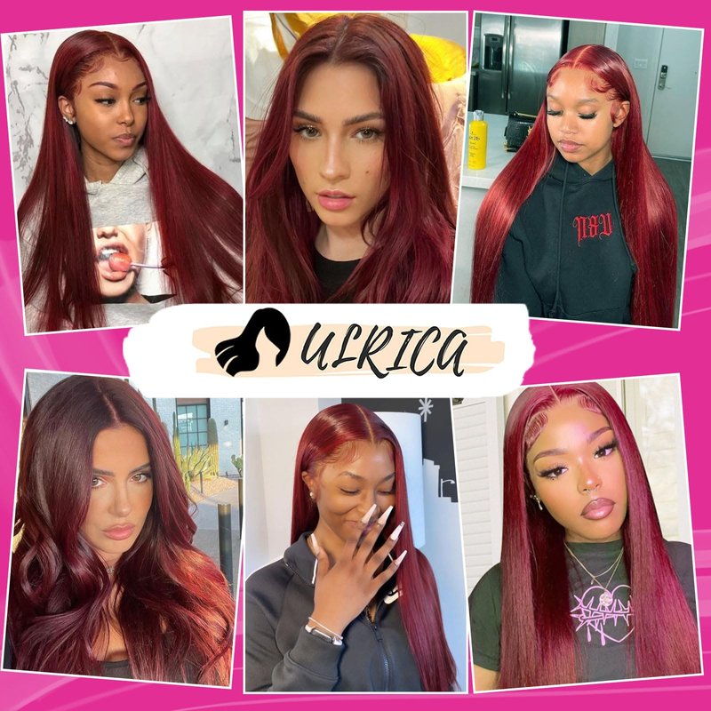 ULRICA Burgundy Lace Front Wigs Human Hair Wigs for Black Women 13x4 HD Lace Front Wigs Human Hair Pre Plucked Red Lace Front Wigs Human Hair Straight Lace Front Wigs Human Hair Burgundy Wig 20 Inch
