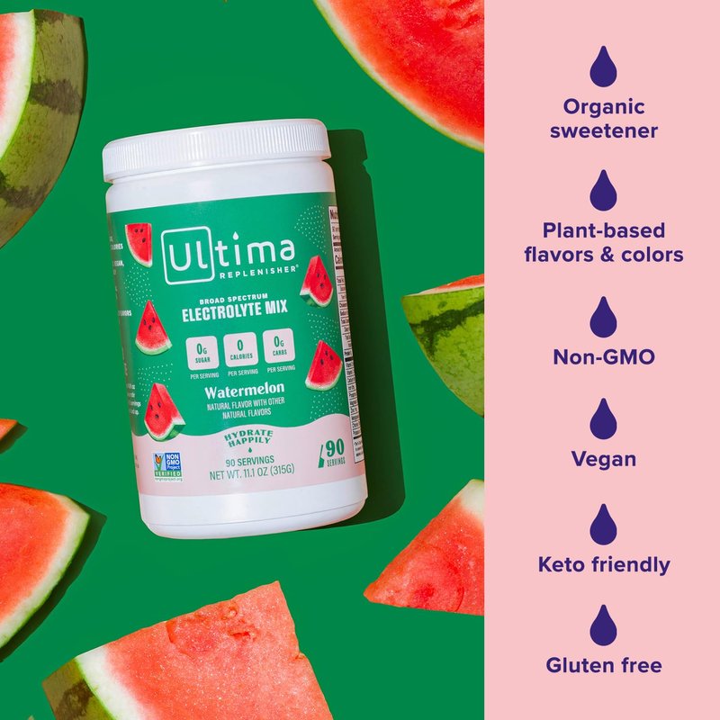 Ultima Replenisher Daily Electrolyte Drink Mix – Watermelon, 90 Servings – Hydration Powder with 6 Key Electrolytes & Trace Minerals – Keto Friendly, Vegan, Non-GMO & Sugar-Free Electrolyte Powder
