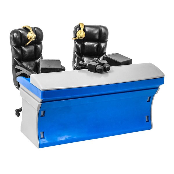 Upgrade your wrestling action figure commentary with the ULTIMATE Commentator Table Playsets. This comprehensive set features a table measuring 6.5 inches wide, 3.15 inches tall, and 3 inches deep, paired with deluxe office chairs measuring 4.5 inches tall by 2.5 inches wide. These updated chairs replicate the ones currently used on TV, adding an extra layer of authenticity to your setups. Perfect for setting up intense commentary scenes, this playset brings more realism to your wrestling figure matches, making it an essential addition for any wrestling enthusiast’s collection! Compatible with all wrestling action figures. Also a good scale for other 6-8 inch action figures.