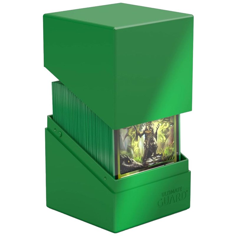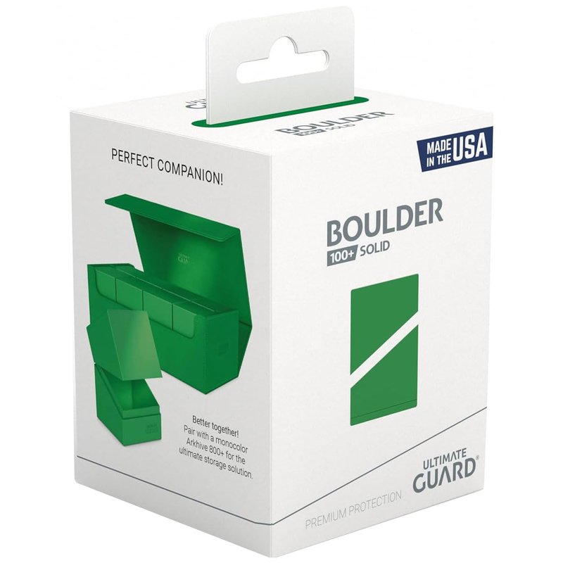 Ultimate Guard Boulder Solid 100+, Deck Case for 100 Double-Sleeved TCG Cards, Green, Secure & Durable Storage for Trading Card Games, No Transparency