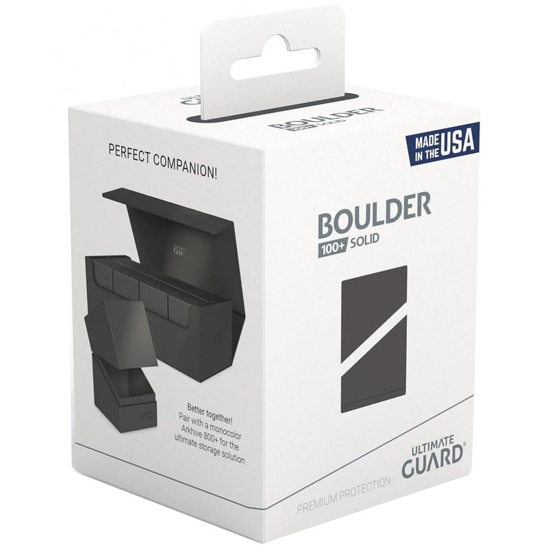 Ultimate Guard Boulder Solid 100+, Deck Case for 100 Double-Sleeved TCG Cards, Grey, Secure & Durable Storage for Trading Card Games, No Transparency