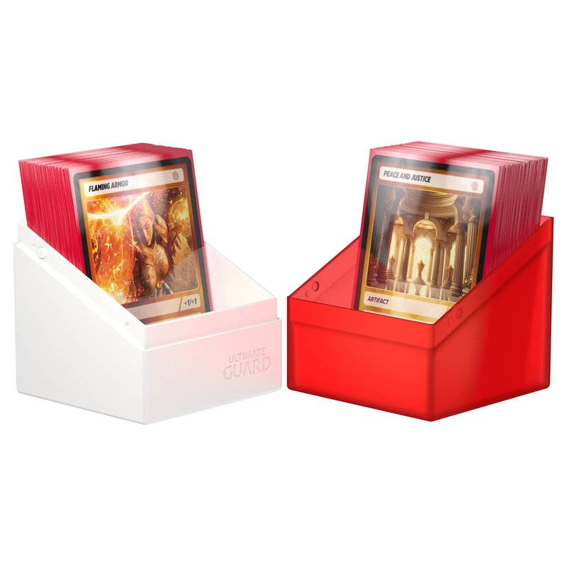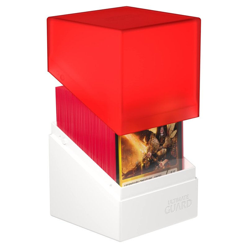 Ultimate Guard Boulder Synergy 100+, Deck Case for 100 Double-Sleeved TCG Cards, Red/White, Secure & Durable Storage for Trading Card Games