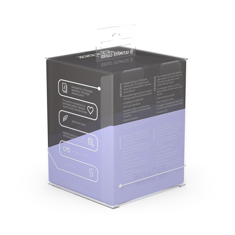 - Turn your deck boxes into a mystical place! With the Druidic Secrets Boulder 100+, you not only get a reliable card deck box of the highest Ultimate Guard quality, but also a real eye-catcher with its magical ornaments - whether as a single box or a perfect addition to our Druidic Secrets Bundle. With six exclusive colors and mystical patterns, you're sure to find the deck box that's right for you.