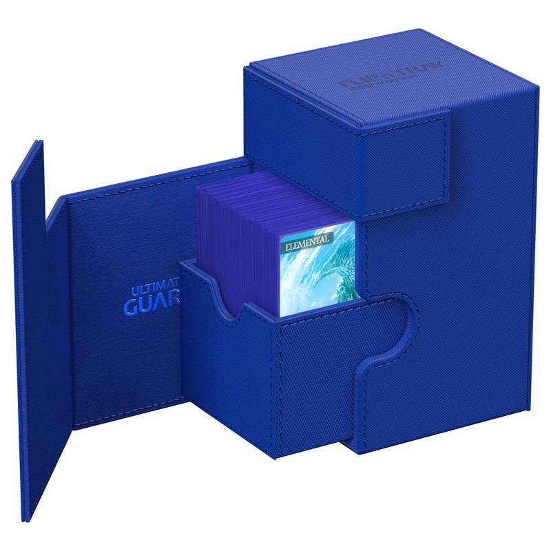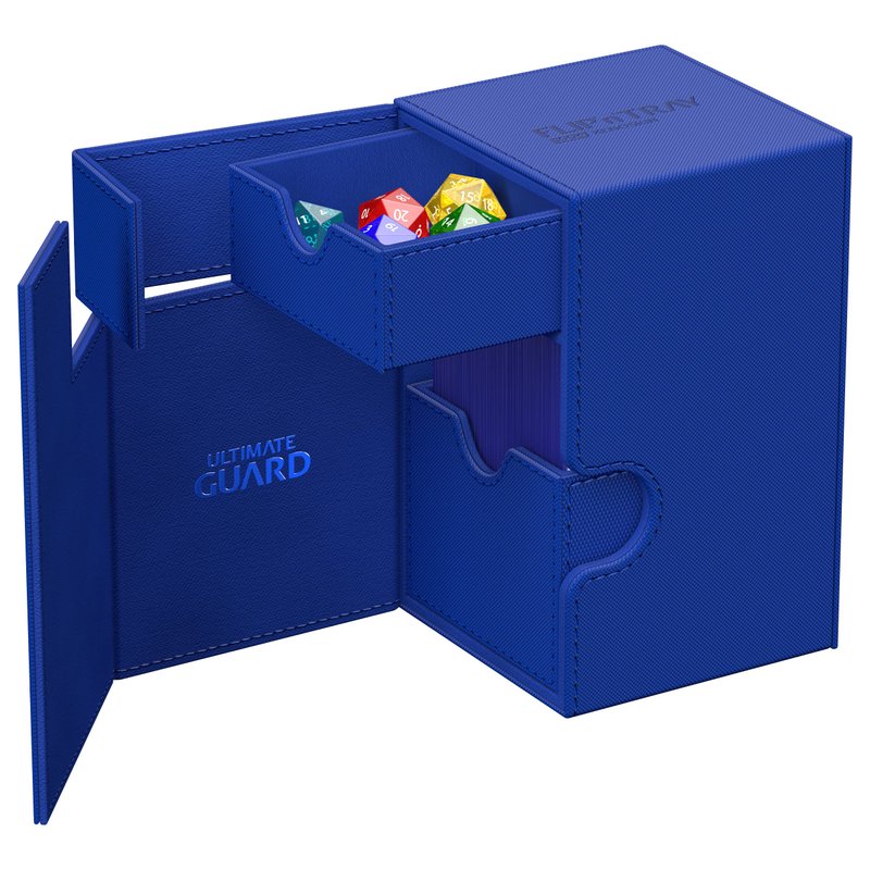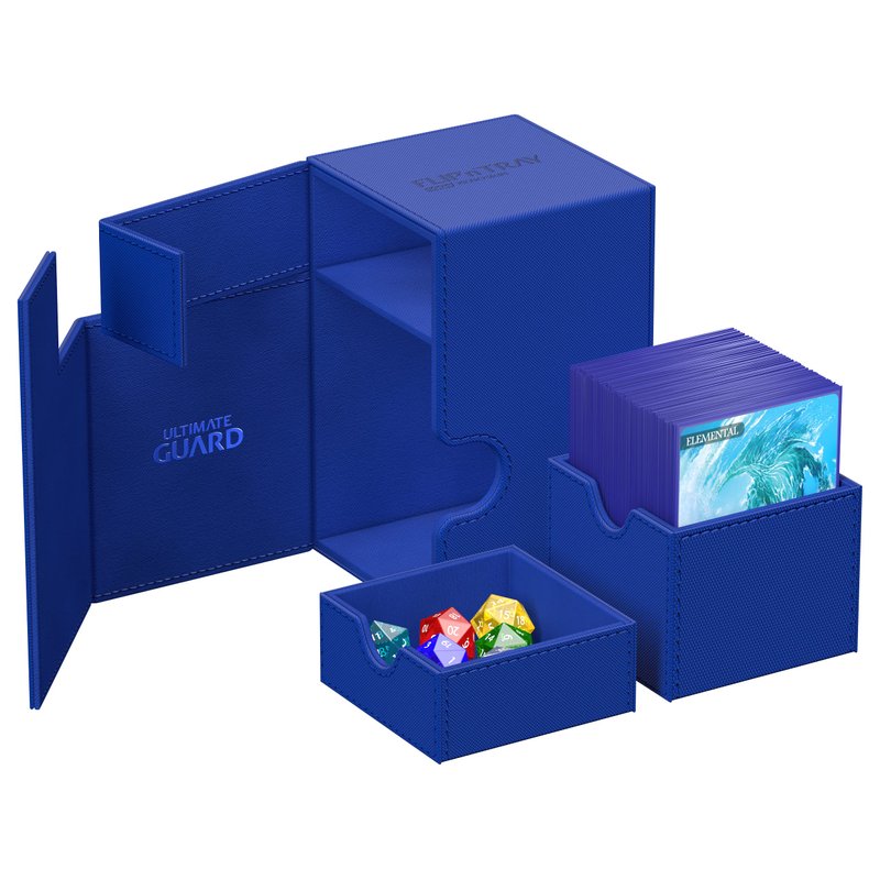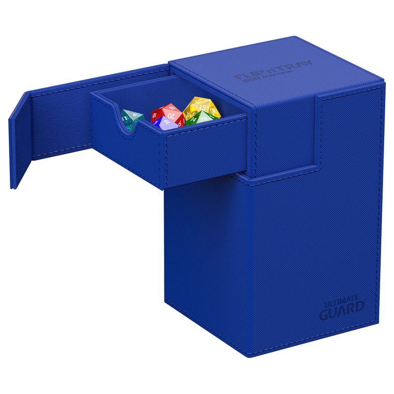 Ultimate Guard Flip 'n' Tray 100+, Deck Case for 100 Double-Sleeved TCG Cards + Dice Tray, Blue, Independent Magnetic Closure & Microfiber Lining