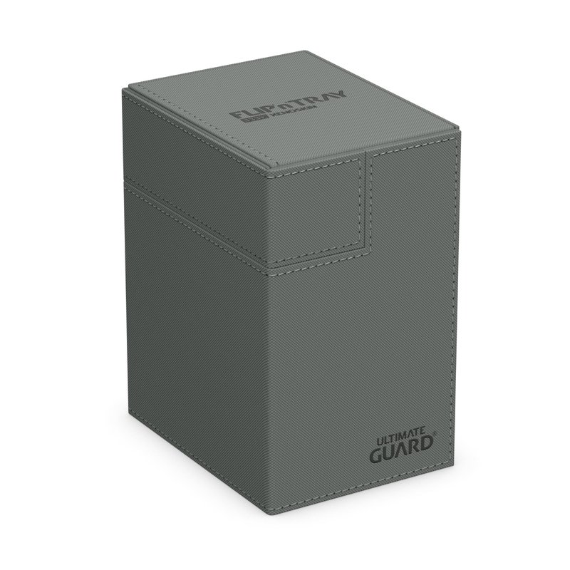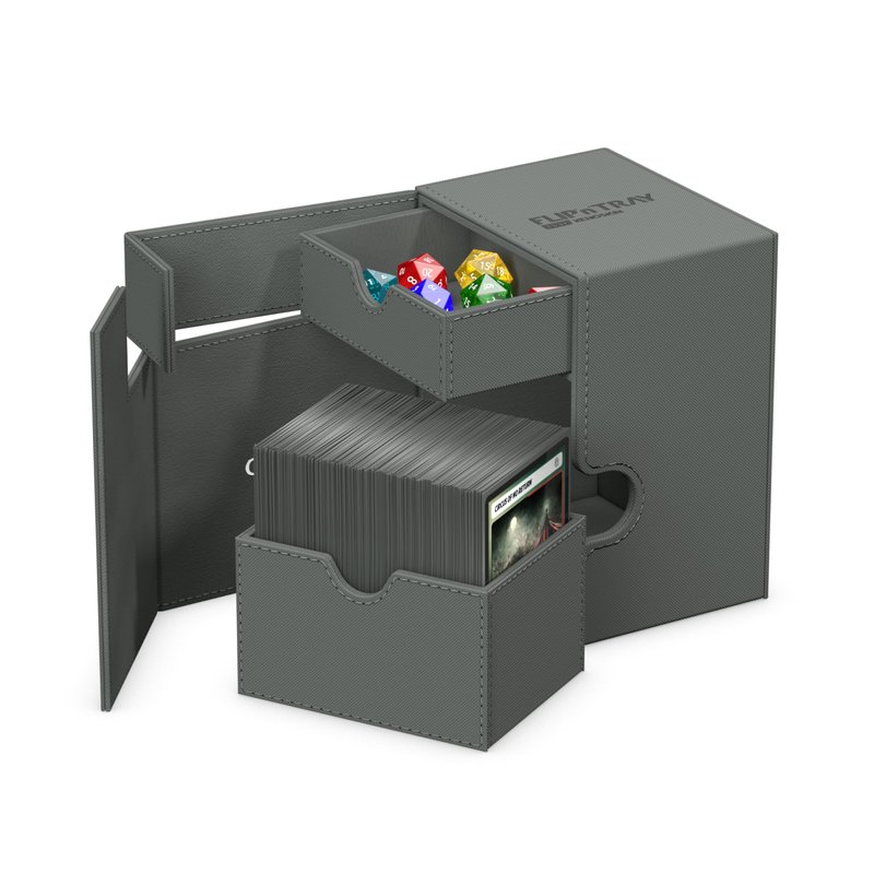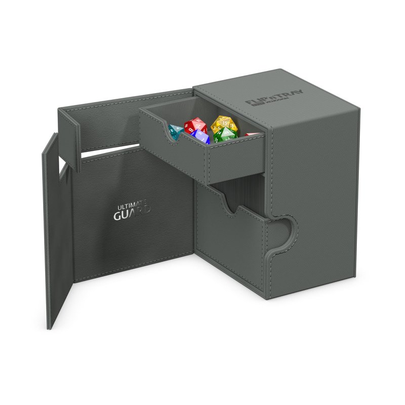 Ultimate Guard Flip 'n' Tray 133+, Deck Case for 133 Double-Sleeved TCG Cards + Dice Tray, Grey, Independent Magnetic Closure & Microfiber Inner Lining