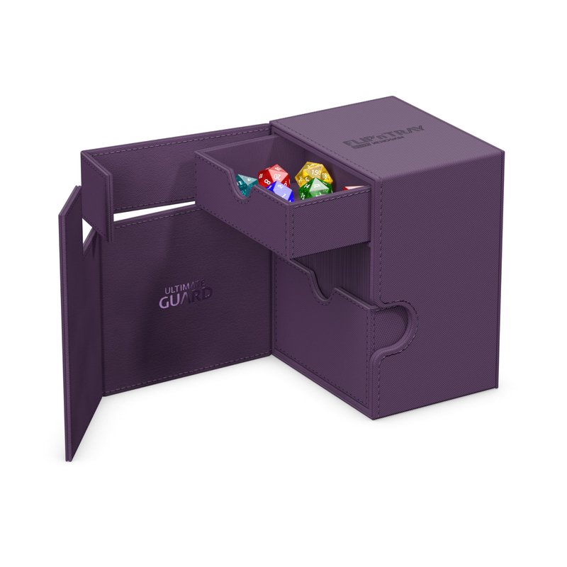 Ultimate Guard Flip 'n' Tray 133+, Deck Case for 133 Double-Sleeved TCG Cards + Dice Tray, Purple, Independent Magnetic Closure & Microfiber Inner Lining
