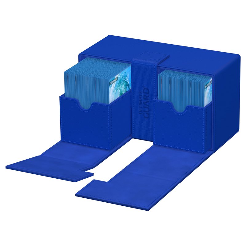 Ultimate Guard Flip 'n' Tray 200+, Deck Case for 200 Double-Sleeved TCG Cards +Dice Tray, Blue, Independent Magnetic Closure & Microfiber Inner Lining